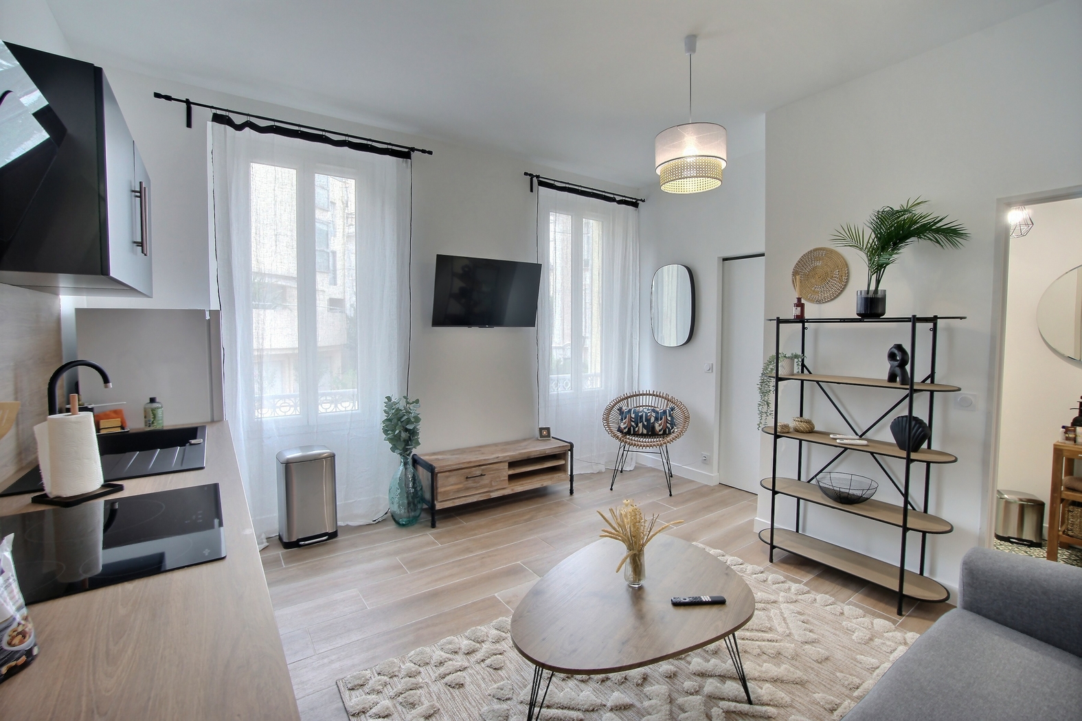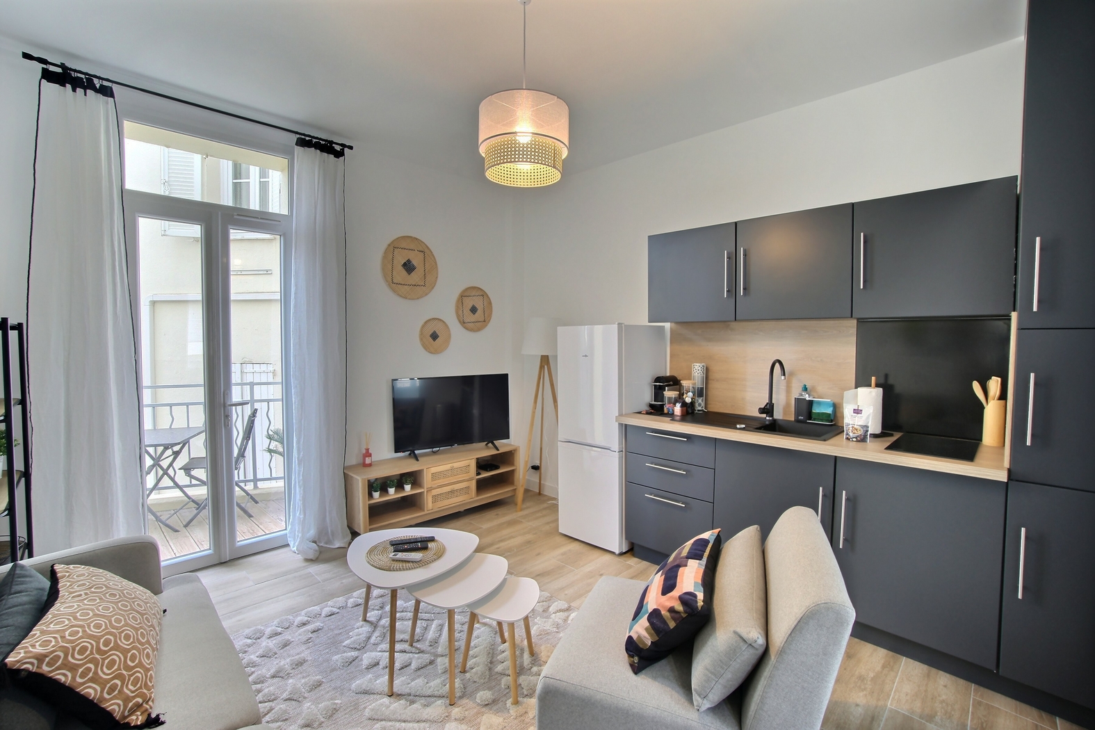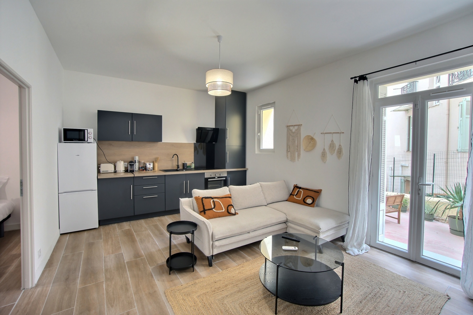 Climatisés et insonorisés, les appartements 2 pièces comprennent une cuisine équipée avec un réfrigérateur, un four, une bouilloire électrique, un lave-vaisselle et des ustensiles de cuisine.