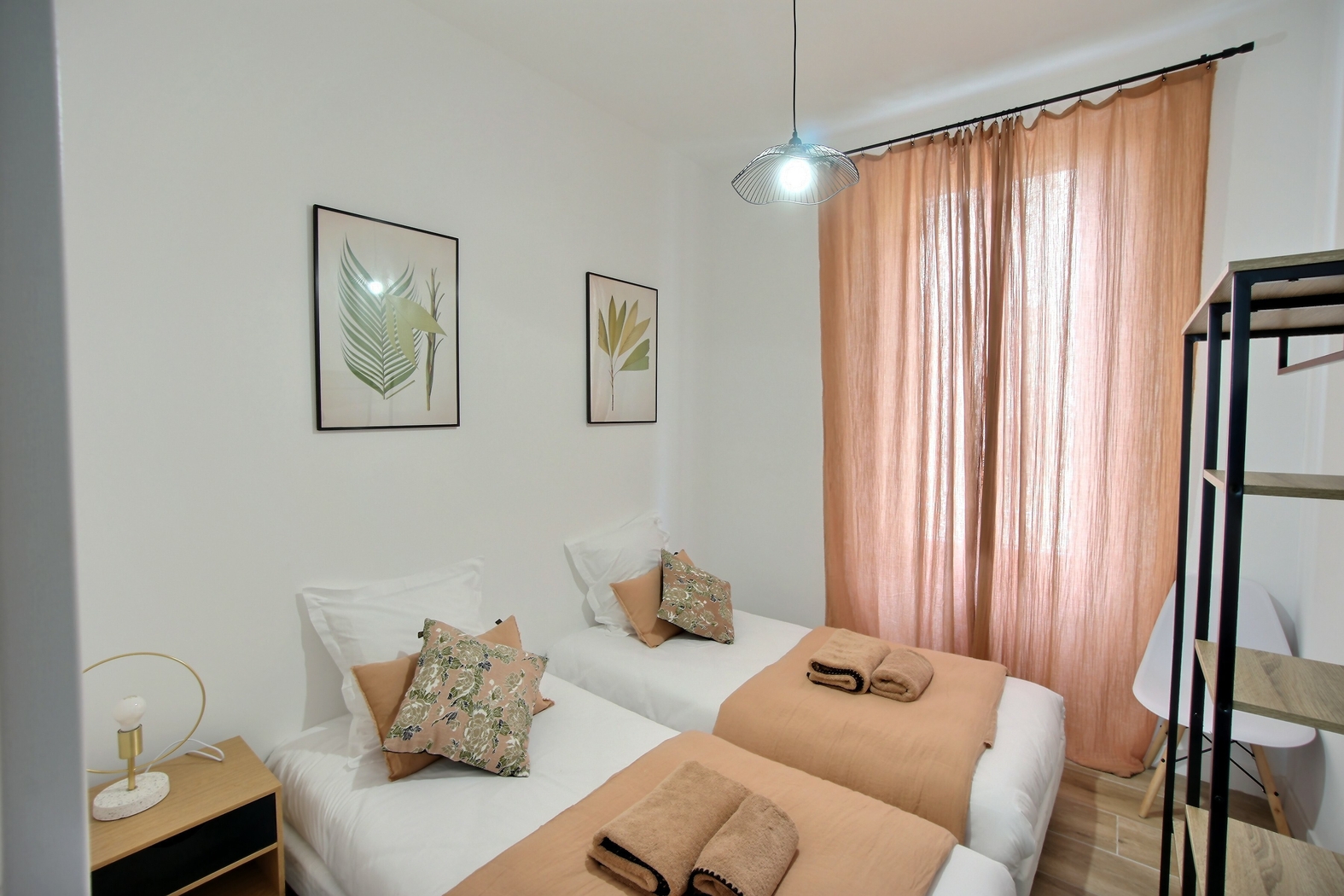 Deux chambres spacieuses s’offrent à vous : une chambre avec un lit double et une chambre avec deux lits simples.